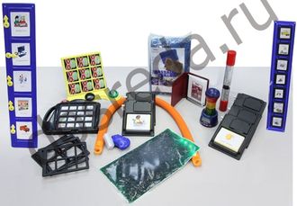 - Обучающий коммуникатор со съемными символами. Коммуникатор состоит из 7-ми секций для вставки картинок. В общей сложности можно записать семь 35-секундных сообщений к каждой картинке. Все сообщения можно перезаписывать, поэтому картинок может быть сколько угодно.