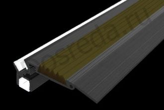 Алюминиевый накладной профиль GlowStep52 со съёмной гибкой вставкой из термоэластопласта и светодиодной подсветкой предназначен для установки на углах ступеней лестниц в качестве противоскользящего профиля безопасности, заметного и в условиях слабого или отсутствующего освещения.